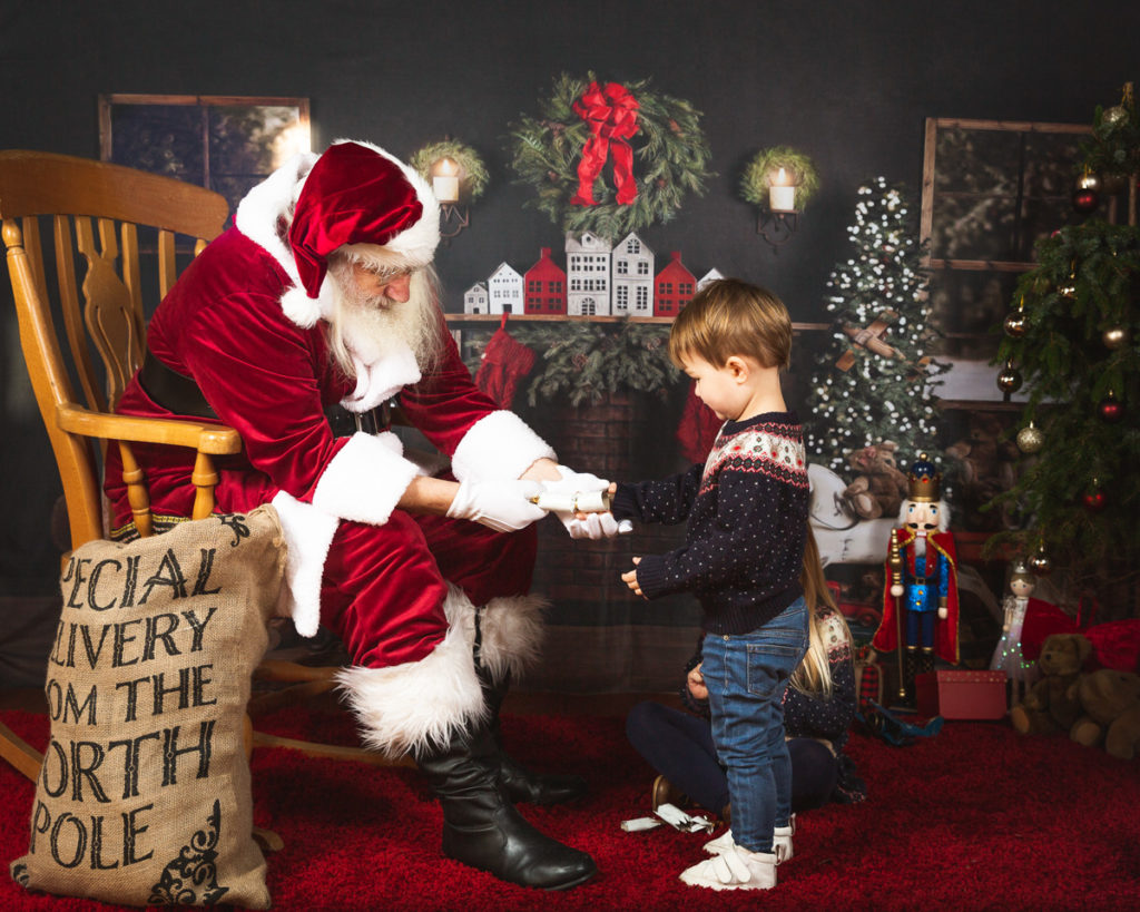 - private 30-minute session with Father Christmas, featuring storytelling and a delightful photoshoot